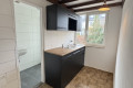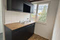 Neu montierte, moderne Küche (ca. 6 m2) mit ausreichend Arbeit- und Staufläche. Zudem versehen mit neuen Geräten, sowie Induktionsherd (2 Platten) und freistehendem Kühlschrank mit Gefrierfach. Fliesenboden